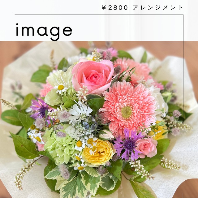 3000円のアレンジです。 小さめなので、ちょっとしたギフトやご自宅用に。 お好みのカラーをお選びください。 備考欄にご用途を書いてくださるとイメージがしやすいです。 写真はイメージになります。 ギフト用ラッピングをし、メッセージカードをお付けできます。