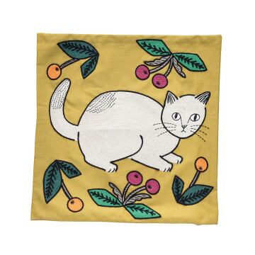 松尾ミユキさんの描く、猫たちと、なんともにくめない表情の鳥たちをカラフルな刺繍で表現したアイテムができました。