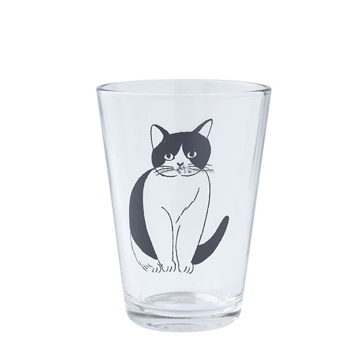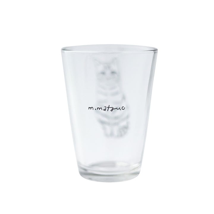 松尾ミユキさんの描く線画のネコ達をプリントした、持ちやすいサイズのグラスです。