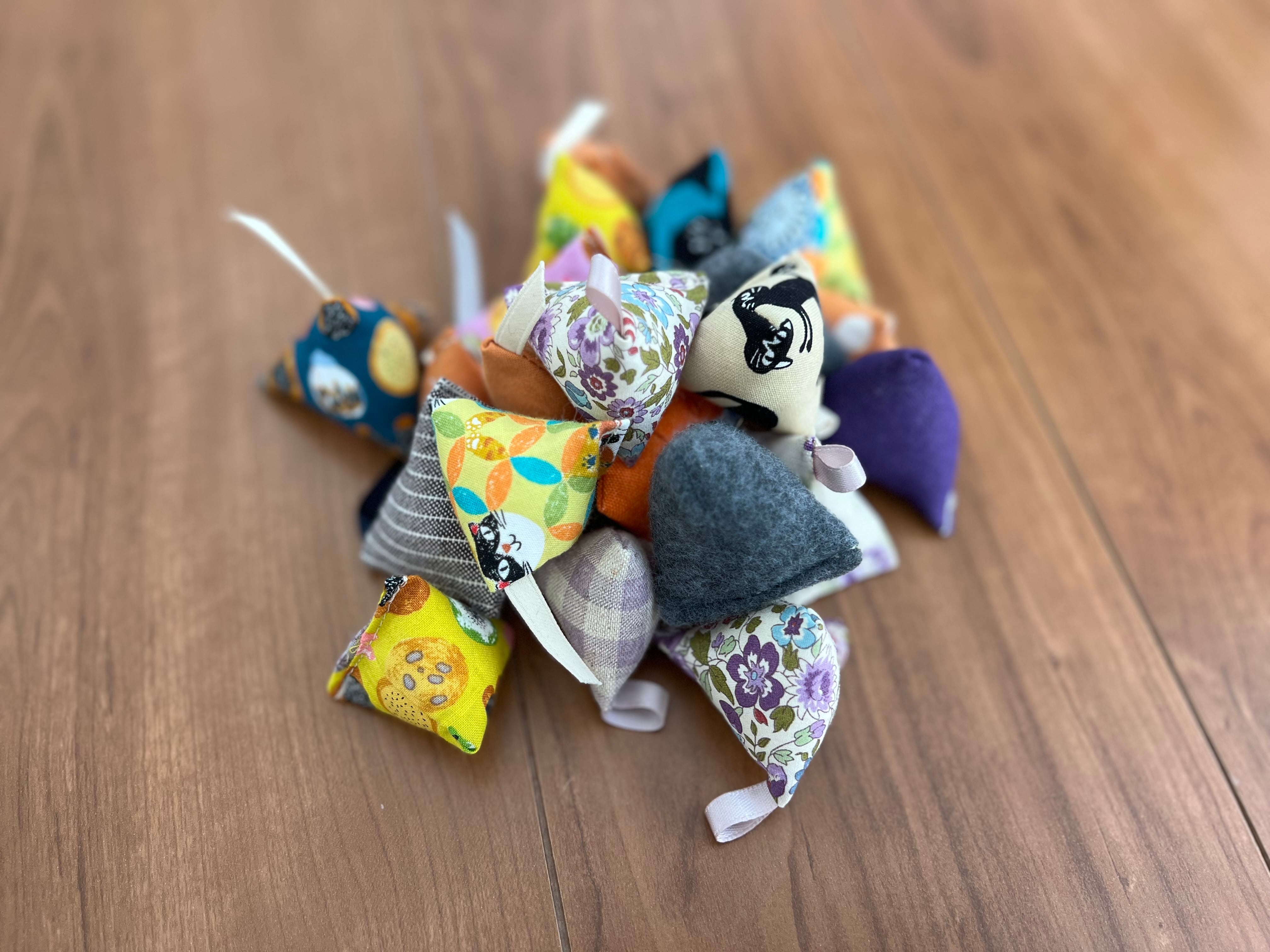 ひも付き、紐なし、素材や柄、大きさ色々のおまかせ3個入りセット。